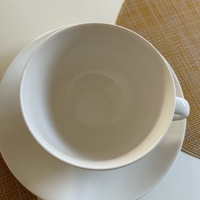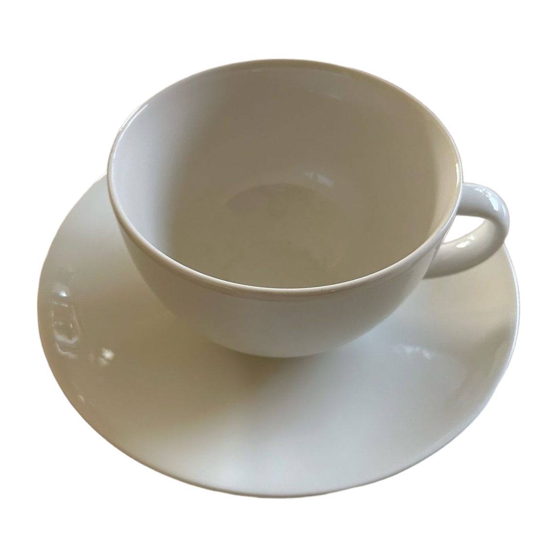 Arabia 24h, valkoinen, teemuki, teekuppi, jumbokuppi aluslautasella