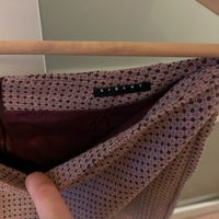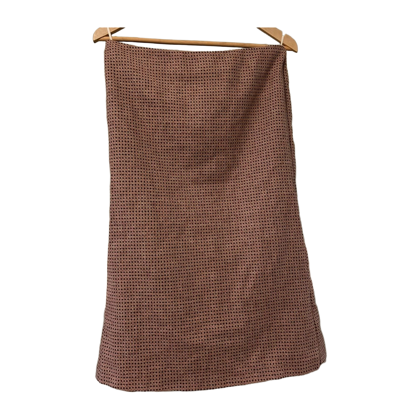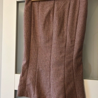 Sisley polvimittainen hame. Villasekoitekangas ruudullinen ja murretun värinen. roosa, beige, luumu. Edestä suora leikkaus. Takana muotoon leikkaukset. Ei halkiota. Hieman leveämpi helma mahdollistaa kävelyn. Vuorillinen. Uudenveroinen.