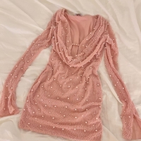 Oh pollyn pinkki juhlamekko, jossa on kaunis leikkais kaula-aukossa ja kimaltelevaa glitteriä ja helmiä, pitkät hihat, jossa halkiot, kangas on painavaa ja todella laadukasta, hihat ovat läpinäkyvää materiaalia. Koko on uk 6 ja us 2, joka vastaa kokoa 34 eli xs. Kerran käytetty. Ovh n. 115€