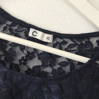 Hyvässä kunnossa oleva tummansininen pitsipaita, jossa 3/4 leveät hihat. 🤩 Koko vastaa mielestäni enemmän väljää s-kokoa. (Tuotelappu leikattu irti läpikuultavuuden vuoksi) Ilmainen toimitus koodilla ES5753🥰