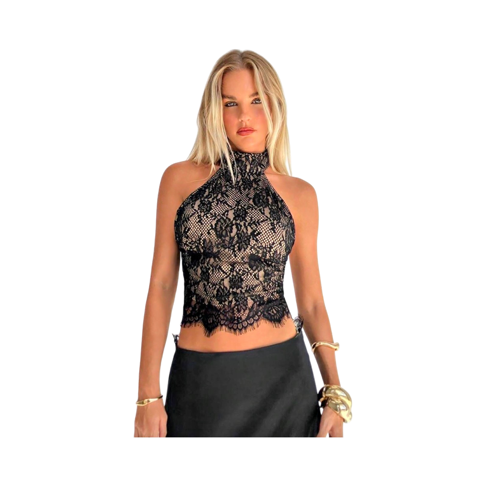 Kaunis ja viettelevä musta pitsitoppi