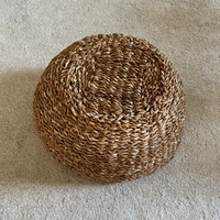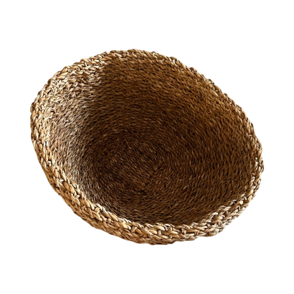 Pyöreä luonnonmateriaalinen säilytyskori, käytetty mutta hyväkuntoinen.