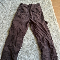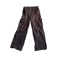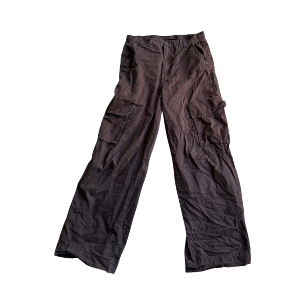 Leveät ruskeat cargo-housut, useita taskuja, 100% puuvilla.