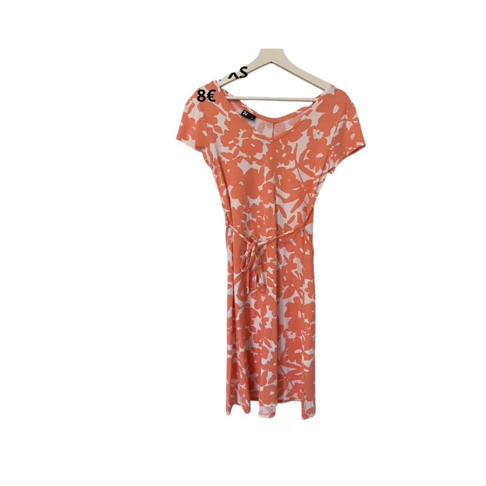 Lyhyt hihainen, kangasvyöllä, kukkakuosi, koko XS, joustavaa matskua
