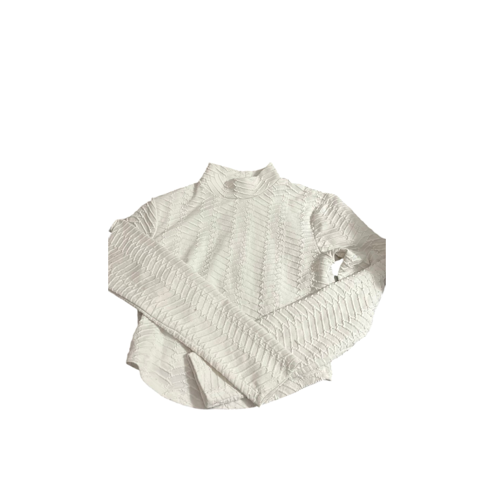 Valkea pitkähihainen paita, teksturoitu ribbikuvio, hyvä kunto.
