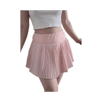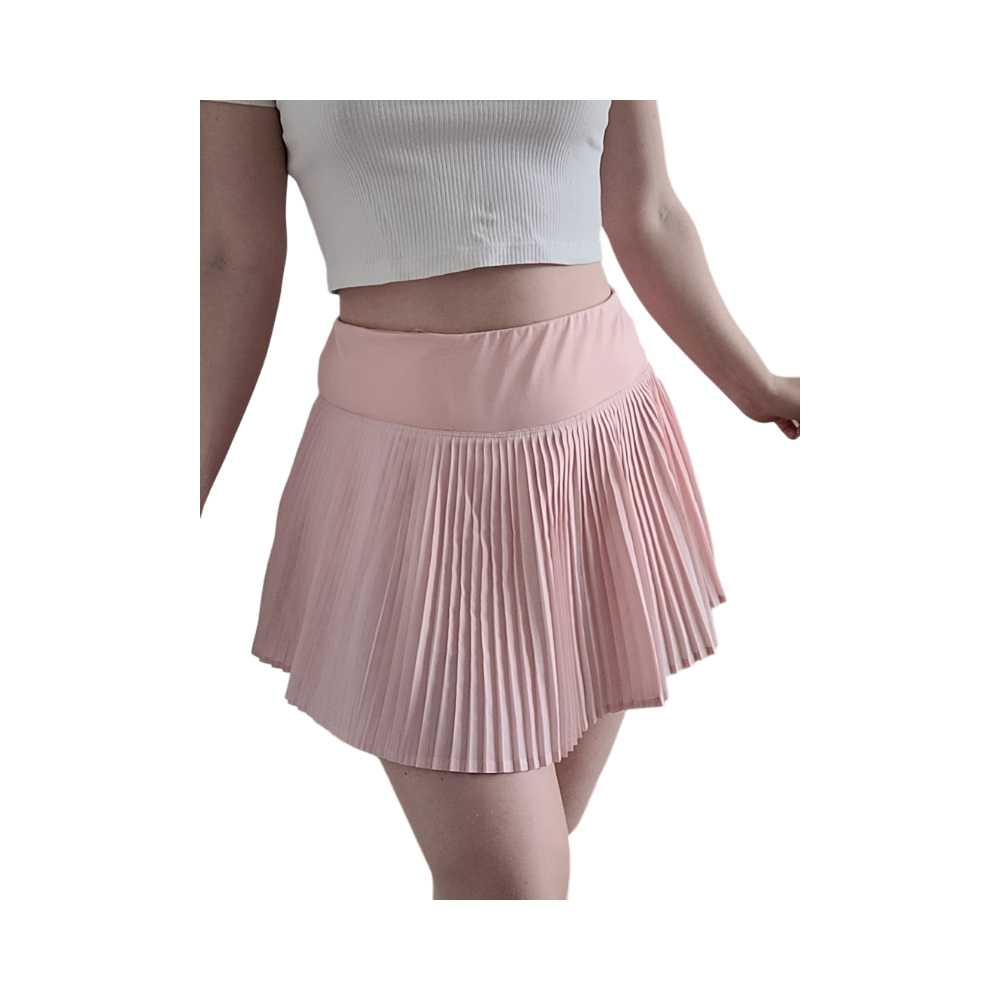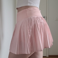 Tosi söpö persikanvärinen urheilu/tennis/padelhame, jossa shortsit alla. Vyötärönauhassa takapuolella vetoketjutasku (kuva 4).
