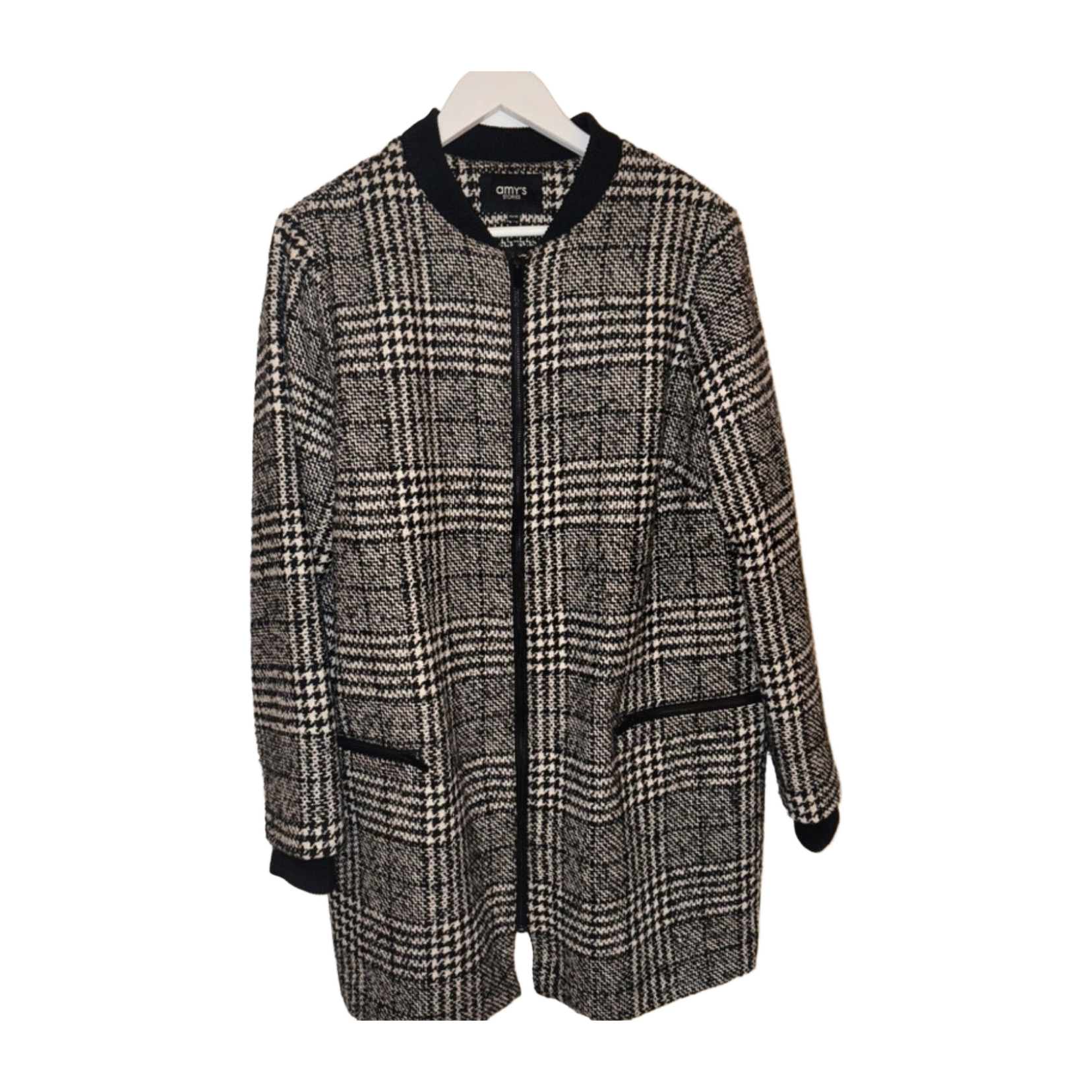 Mustavalkoinen pitkä takki