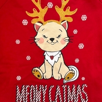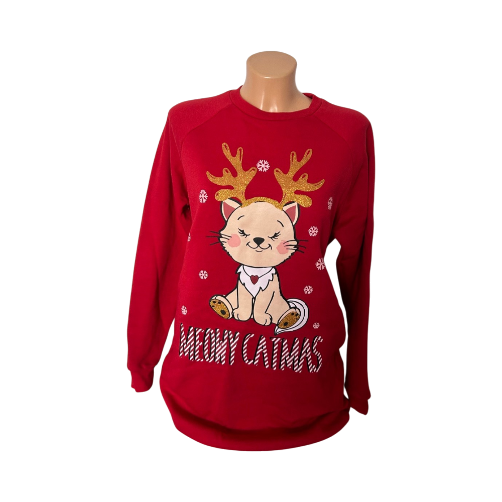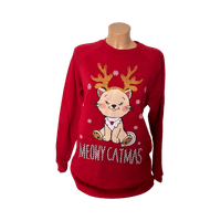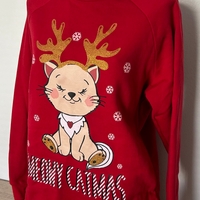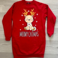 Punainen lämmin talvella pidettävä paitamekko söpöllä kissan kuvalla. Koko S. Hyväkuntoinen.
