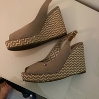 Wedge eli kiilakorkosandaalit. Sivussa tommyn logo. Sisällä jalkaosassa vähän tummeentumaa, mutta muuten täysin siistissä kunnossa