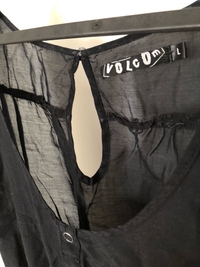 Kevyt musta tunika napituksella, koko L, merkki Volcom. Kangas läpikuultava.