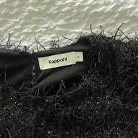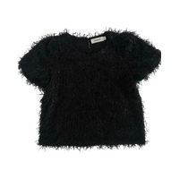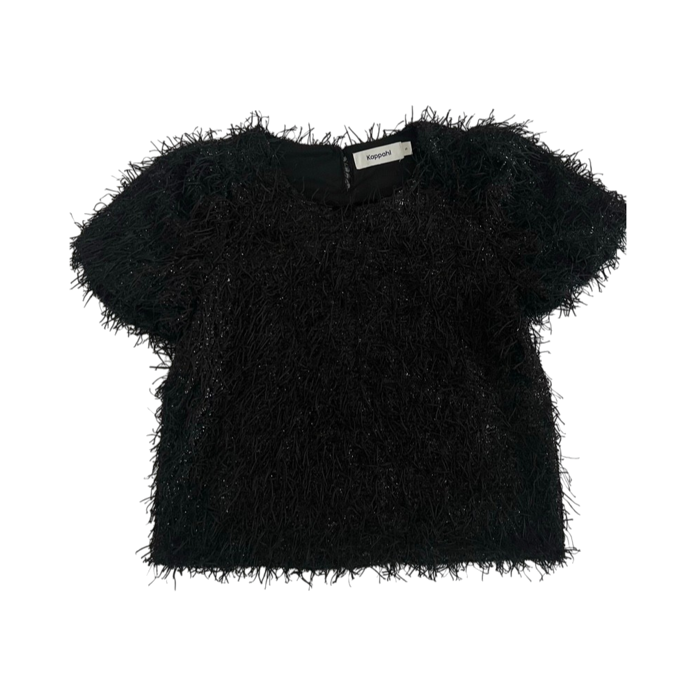 Lyhyt musta pusero teksturoidulla koristekuidulla.