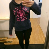 Mukava huppari, jossa kirkkaan pinkillä painatus edessä.