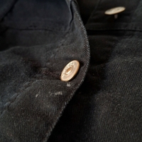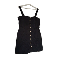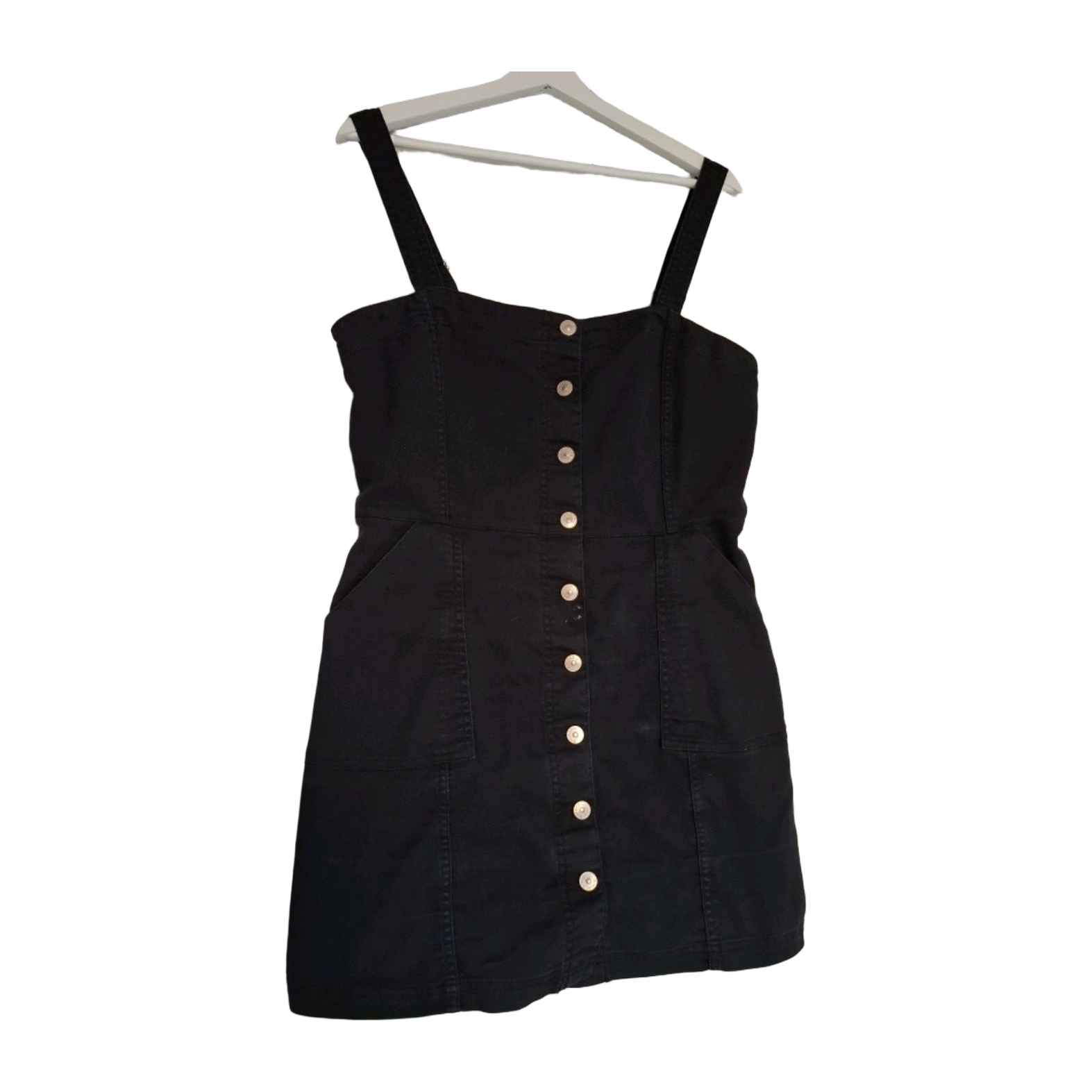 Käytetty ihonmyötäinen musta edestä napitettava mekko taskuilla.