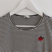 Uudenveroinen ihana siisti musta-valkoraidallinen ribattu paita, miellyttävän pehmeää materiaalia. Koko M. Polyesteri/viskoosi/elastaani.