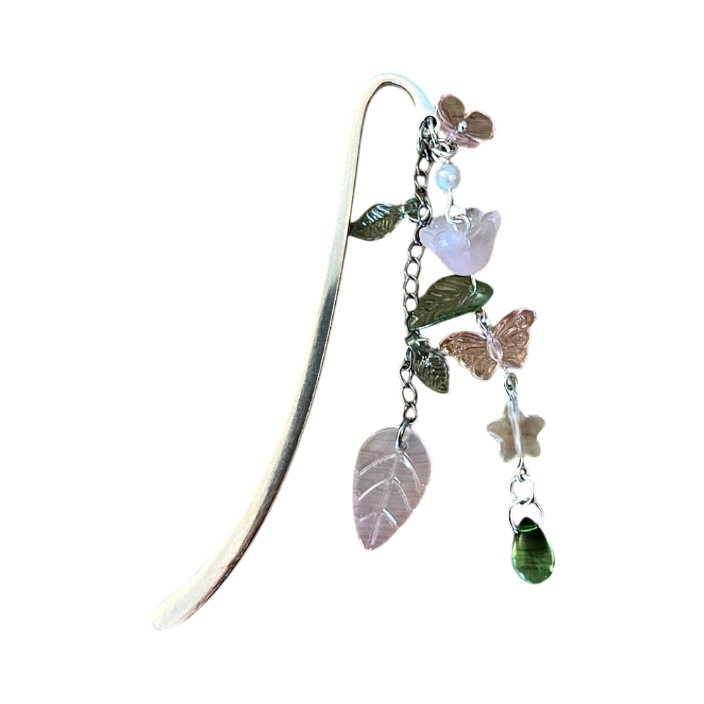Käsintehty kirjanmerkki lasi- ja akryylihelmillä koristeltuna🩷 Itselle tai lahjaksi lukutoukalle✨