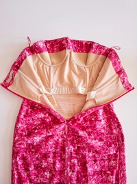 Pink floral strapless dress with built-in bra, size 4, silk!