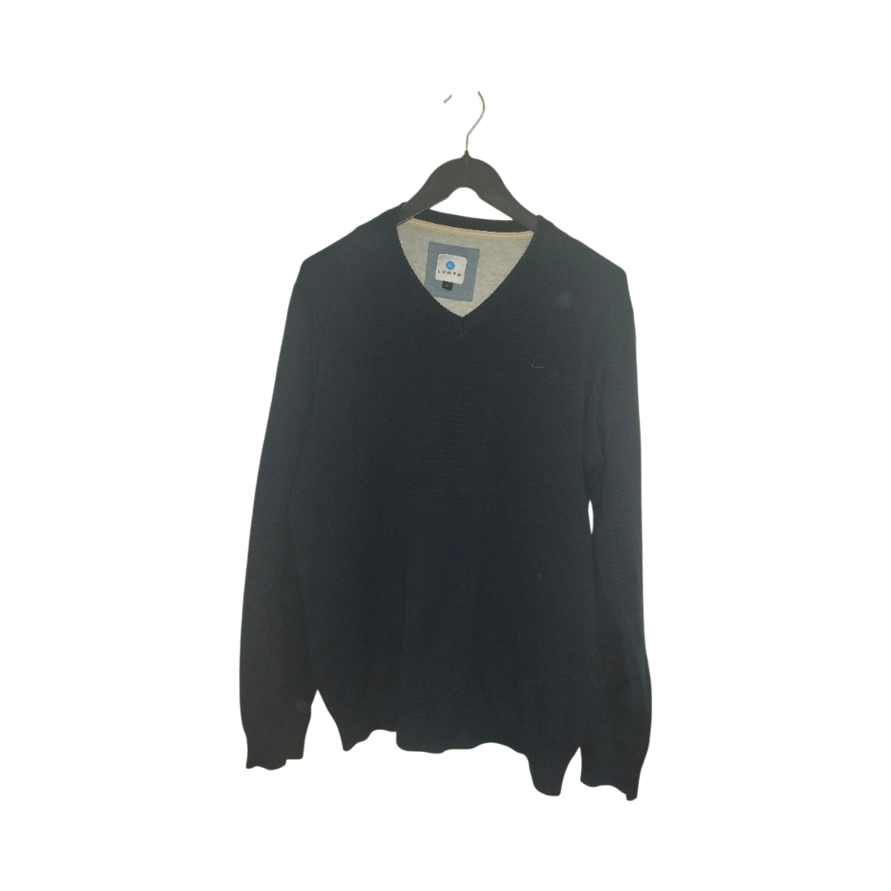 Tummansininen neule v-kauluksella