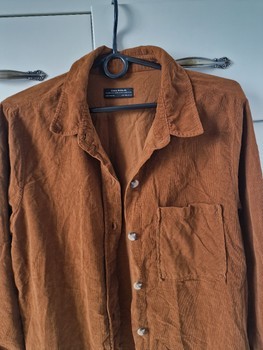 Brown corduroy shirt with button closure and chest pocket. Made of 100% cotton, size L.