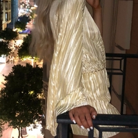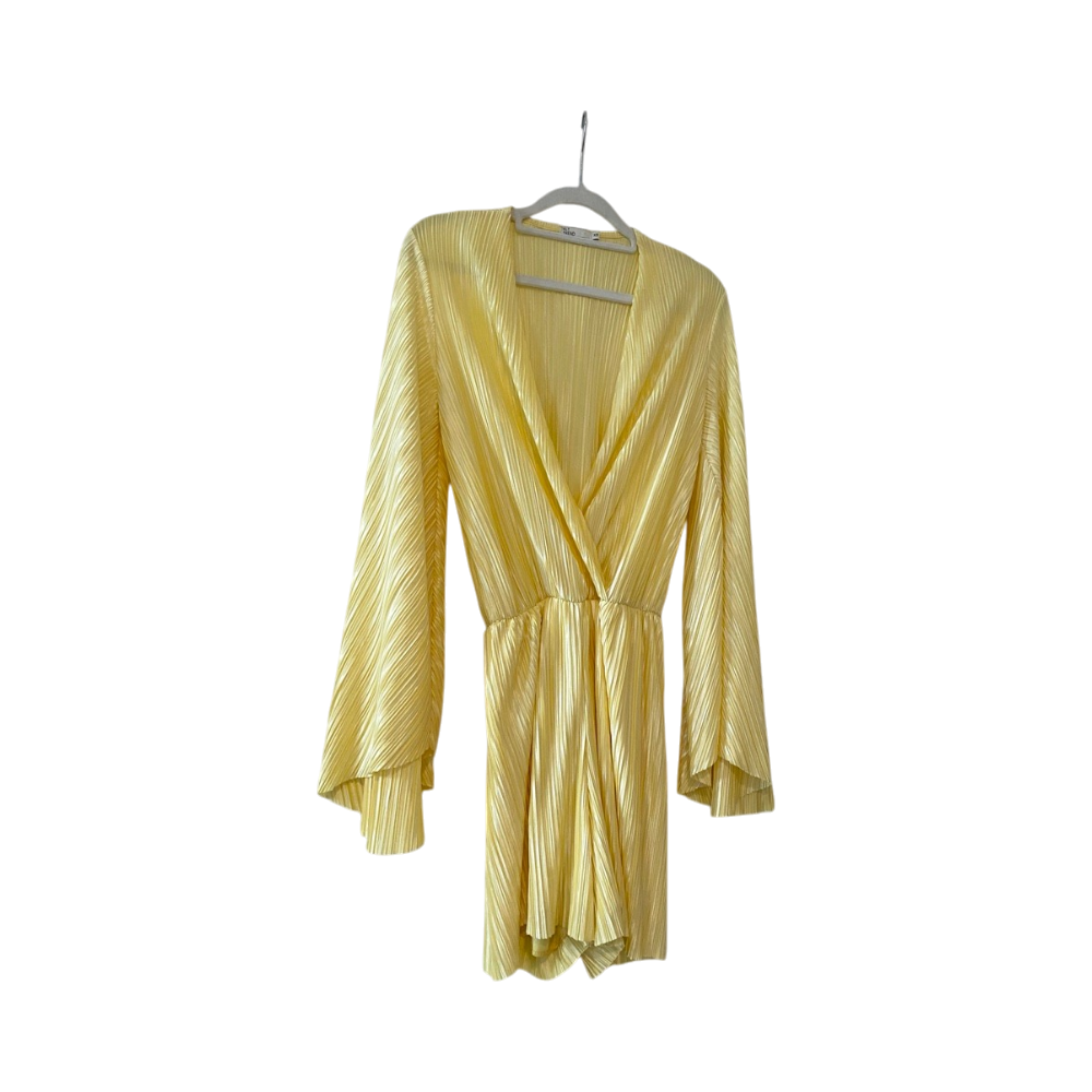 Lyhyt keltainen jumpsuit pitkillä liehukehihansuilla. Ollut kerran päällä, hyvä kunto.