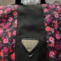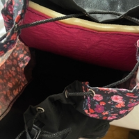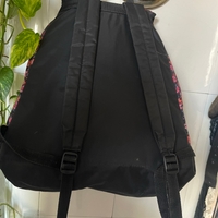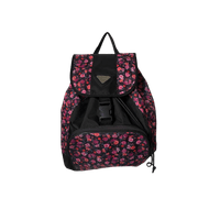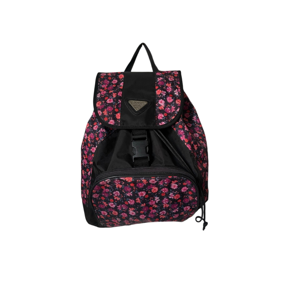 Flower backpack. kukkakuvioinen selkäreppu, etutaskulla ja soljella.