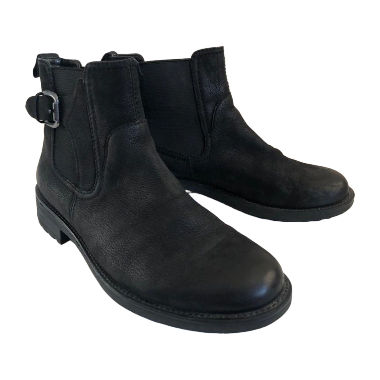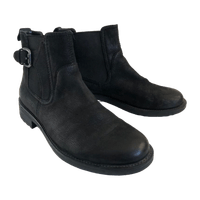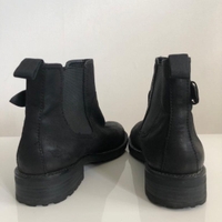 Mustat nupukkinahkaiset Vagabond nilkkurit koristesoljella. Olleet käytössä mutta siistit, pientä kulumaa kärjissä ja vasemman kannan sisäsyrjässä. Hyvät kengät, hieman