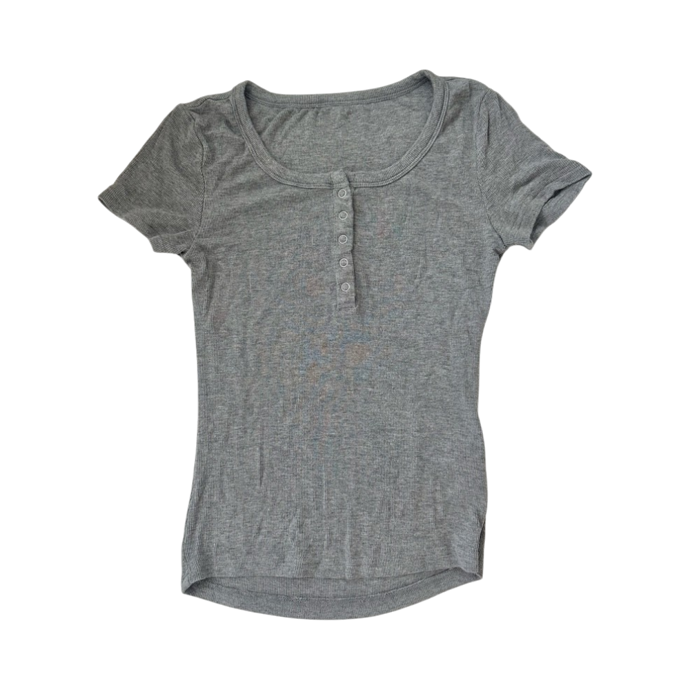 Lyhythihainen ribbattu t-paita, napit edessä. Koko S
