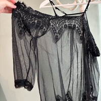Hihallinen läpikuultava pitsitoppi, säämiskäiset olkaimet.