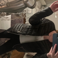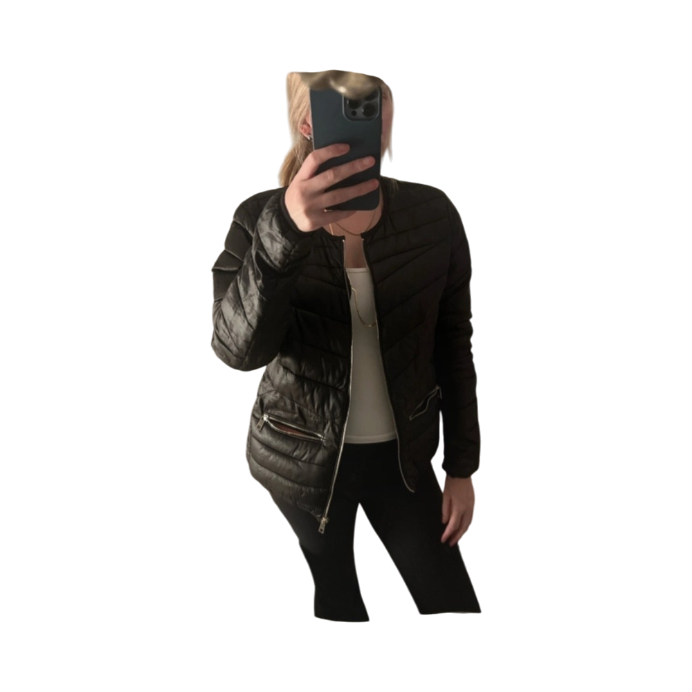 Ohut, musta toppatakki vetoketjulla ja taskuilla.