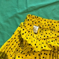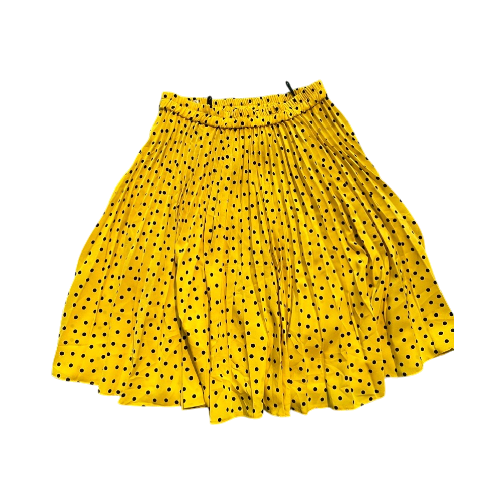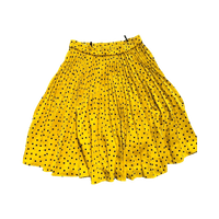 Keltainen mustapilkullinen pliseerattu vintagehame, joustava vyötärö.