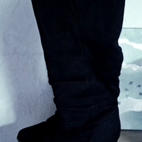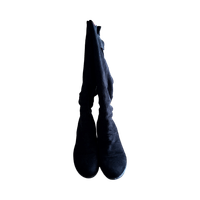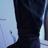 käytetyt mutta hyvät ja ehjät saappaat . Kiilakorko, leveä varsi, joka jää vähän ruttuun. Vetoketju nilkan kohdalla sisäpuolella. Varsi jää vähän ruttuun. Janina F