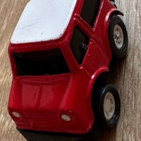 Todennäköisesti lelu esittää Mini Cooper -autoa. Tarkemmat mitat ja kunto näkyvät kuvissa.