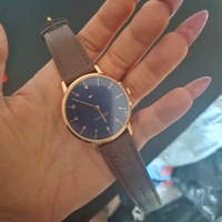 Nahkaranneke, sininen kellotaulu, siro miesten/naisten kello.