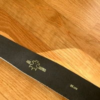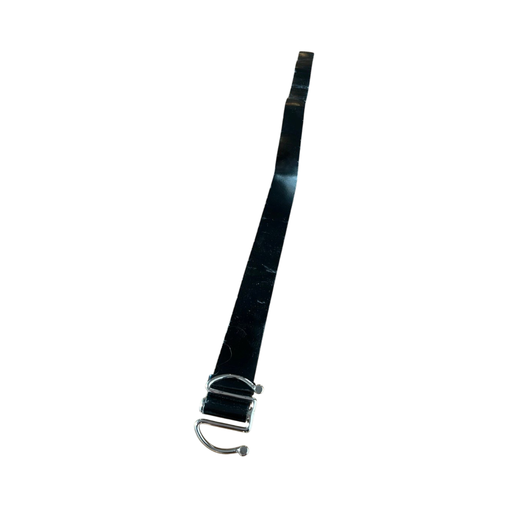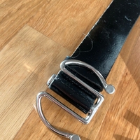 Mustalla pinnalla, hopeanvärinen metallisolki, koko 95 cm.
