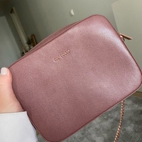 Ted Bakerin marjapuuron värinen crossbody laukku ruusukultaisilla yksityiskohdilla. Erittäin hyvässä kunnossa ja hyvin pidetty laukku!