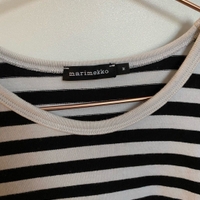 Marimekon klassinen tasaraitapaita. Mustavalkoinen, lyhyet hihat.