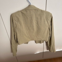 Vaalean vihreä, hieman oliiviin taittava lyhyt bleiseri. Ei tullut koskaan käytettyä, vaikka onkin todella ihana! Pituudeltaan jää vyötärön kohdalle ja suunnittelin käyttäväni tätä korkeavyötäröisen satiinihameen tms. kanssa. On hieman naftia kokoa, eli sopii M kokoiselle täydellisesti!