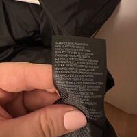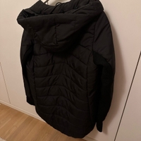 H&M sport musta kevyt untuvatakki. Vähän pidempää mallia, menee minulla yli takapuolen (160cm). Aika tyköistuva.