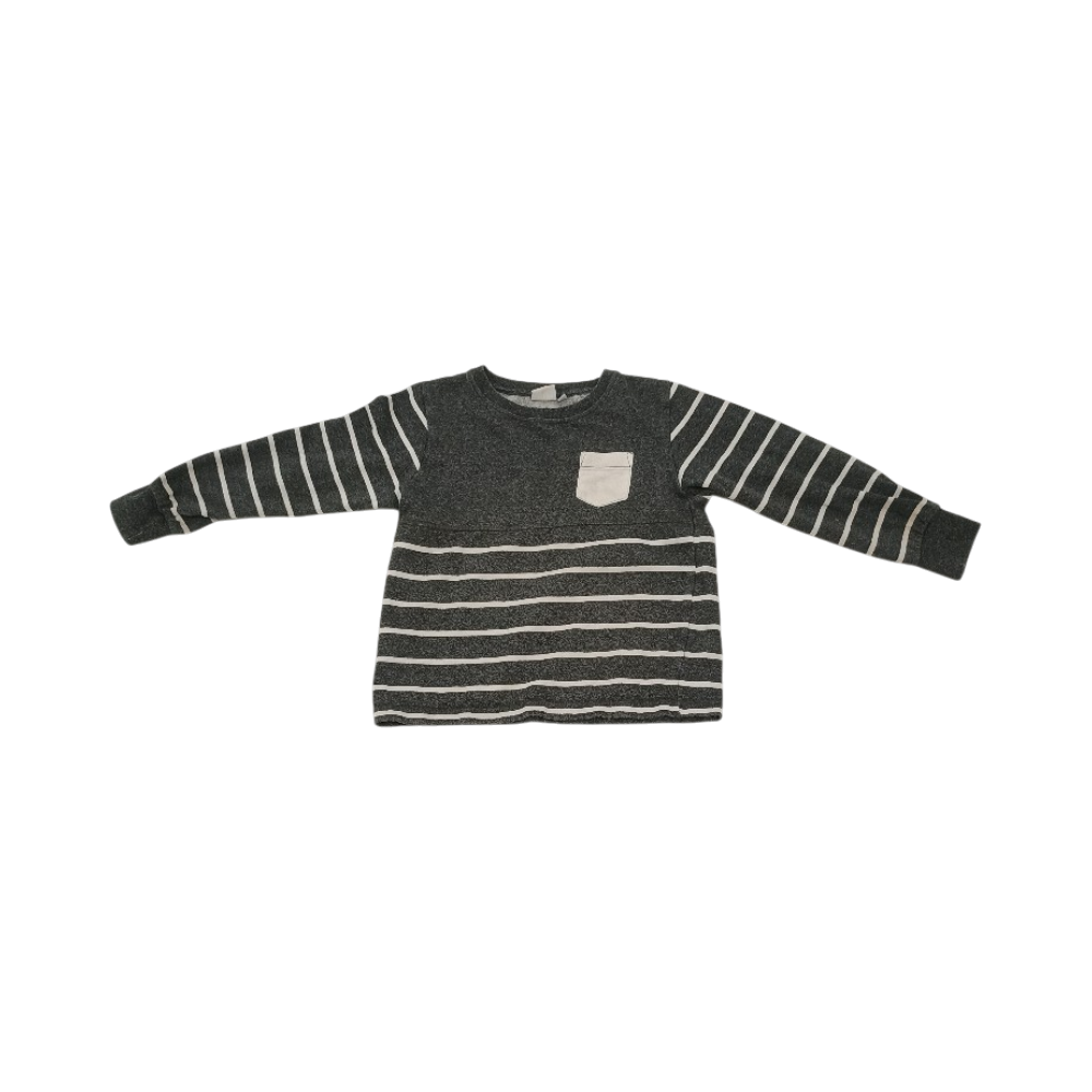 Grey striped long-sleeve top with chest pocket, kids' size 120.
