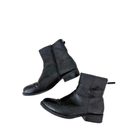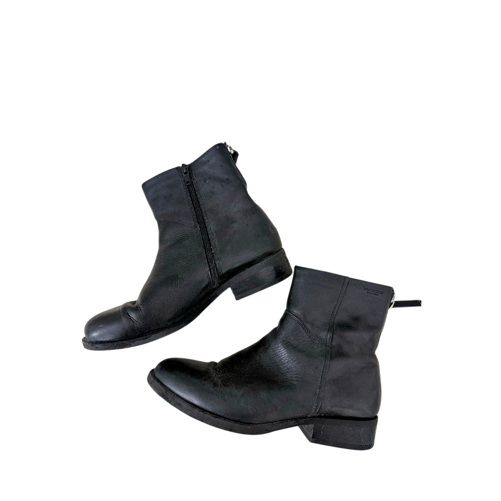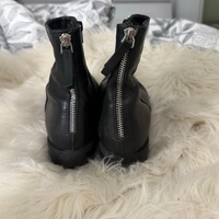 Mustat nahkaiset nilkkurit, sivussa vetiketju. takana koriste vetoketjut, koko 38