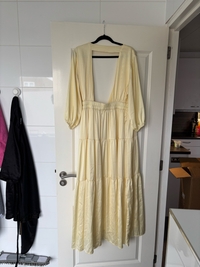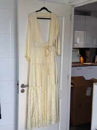 Pitkä keltainen kietaisumekko, upea avoin selkä detail. Uusi!