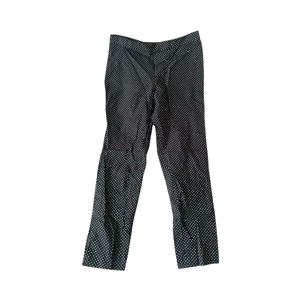 Black trousers with white polka dots, slim straight fit.