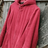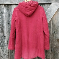 Vero Modan vakosamettitakki. Olisiko 90-luvun lopulta. Väri syvemmän punainen kuin kuvissa. Vetoketjun olen vaihdattanut uuteen. Vasemmassa taskussa (sisällä) pieni reikä. Kainalo-kainalo 55cm. Niska helma 84cm.