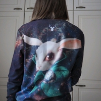 Aloha From Deer -merkkinen Liisa Ihmemaassa -aiheinen collegepaita. Harjattu sisäpinta tekee paidasta mukavan pehmoisen käyttää (kuva 3). Mitat: kainalo-kainalo 53cm, niska-helma 67cm, hiha kainalosta 53cm.
