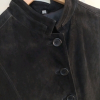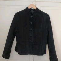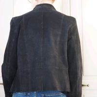 Musta mokkanahkainen takki. Kokomerkintä 40. Kainalo-kainalo 50cm, niska-helma 54cm, vyötärönympärys 90cm, hiha kainalosta 43 cm, olka-olka 41cm.