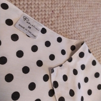 Petuliina pallomekko. Kokomerkintä M. Vyötäröllä kuminauha. Vyötärönympärys 68...82cm, niska-helma 108cm. Mekko istuu itselleni alaosasta melko hyvin, mutta on yläosasta väljä.