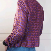 Ranskalainen bleiseri. Kokomerkintä 3. Kangaspäällysteiset napit. Kainalo-kainalo 51cm, vyötärönympärys 88cm, niska-helma 55cm.