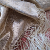 Kultainen itse tehty toppi. Helmassa hapsut. Kokoarvio S. Materiaali ei jousta. Kainalo-kainalo 50cm, niska-helma 62cm.