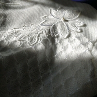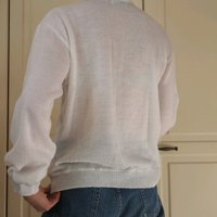Italialainen valkoinen neule. Kokoarvio S-M. Helmassa ja hihoissa resorit. Kainalo-kainalo 55cm, niska-helma 67cm, hiha kainalosta 52cm.