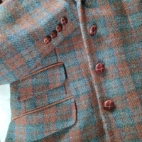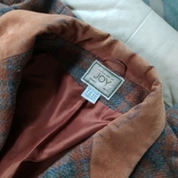 Vintagejakku. Vuoritettu. Villasekoitetta. Taskut. Upeat yksityiskohdat. Kauluksessa kulumaa (kuva 4). Arviolta ysäriltä. Koko noin 38/40. Kainalo-kainalo 50cm, vyötärönympärys 90cm, niska-helma 73cm, hiha kainalosta 40cm.