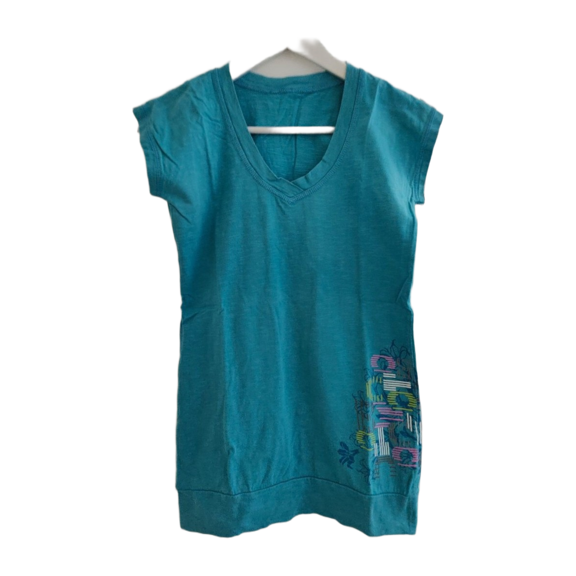 Hyväkuntoinen ihana turkoosi paita, sivussa painettu printti. Koko S.